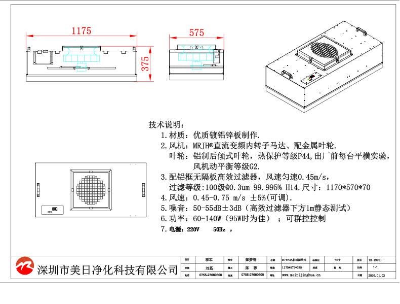 FFU風機過濾機組控制采用其公司開發之非接觸感應式三檔調速,電路均采用電器開關控制,控制安全平穩。彈性、多元化配置除標準機型外,可根據客戶需求,制作不同規格的非標產品。如:風管連接法蘭、濾網、箱體材質等變更。人性化設計機組附裝不銹鋼把手,使搬運及安裝更為方便快捷。
