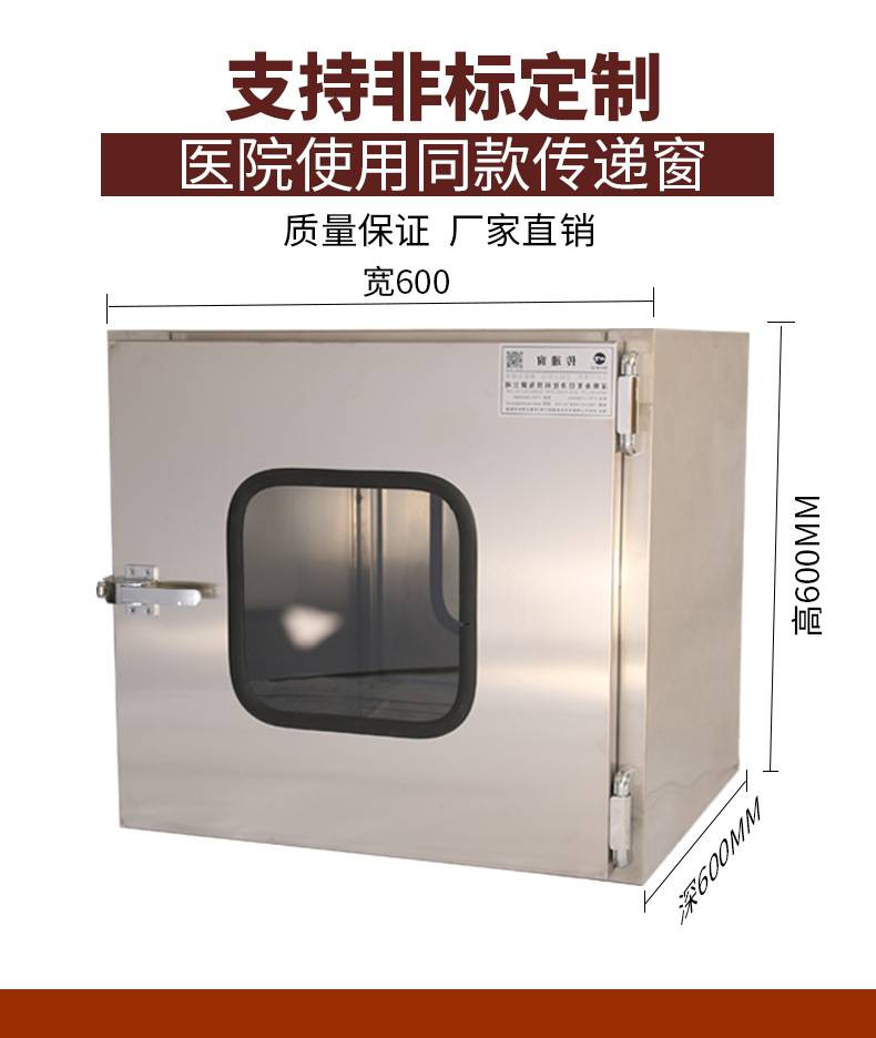 ⒈短距離傳遞窗工作臺(tái)面采用不銹鋼板,平整光潔耐磨