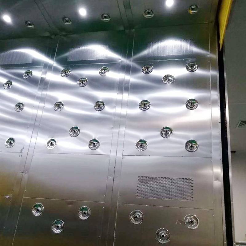 內(nèi)、外箱體可選用1.0mm冷扎鋼板靜電噴涂或全不銹鋼制造;風(fēng)淋室內(nèi)底板配全不銹鋼板。