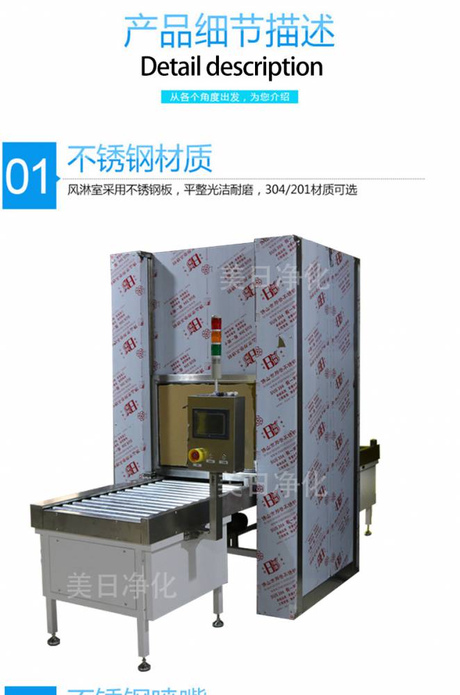 潔凈室內,在動態情況下,細菌及塵埃的發生源是操作者,當操作者進入潔凈室之前,必須用潔凈空氣吹淋其衣服表面附著的塵埃顆粒,并起到氣閘的作用。風淋室定義:也稱風淋間,它是人員或貨位進入潔凈區由風機通過風淋噴嘴噴出經過高效過濾的潔凈強風吹除人或物體表面吸附塵埃的一種通用性很強的局部凈化設備。