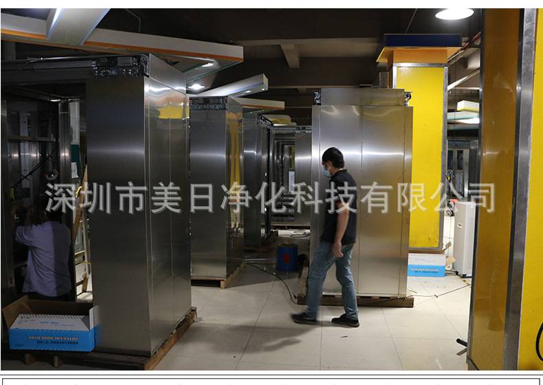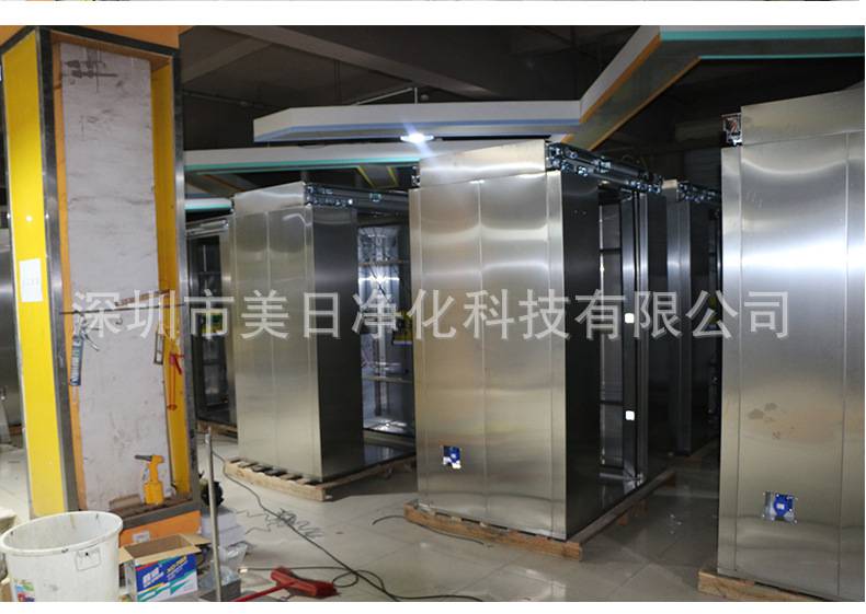 風淋室是一種通用性較強的局部凈化設備,安裝于潔凈室與非潔凈室之間。當人與貨物要進入潔凈區時需經風淋室吹淋,其吹出的潔凈空氣可去除人與貨物所攜帶的塵埃,能有效的阻斷或減少塵源進入潔凈區。風淋室/貨淋室的前后兩道門為電子互鎖,又可起到氣閘的作用,阻止未凈化的空氣進入潔凈區域。