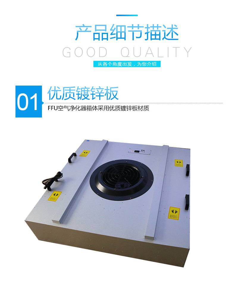FFU風機過濾機組控制采用其公司開發之非接觸感應式三檔調速,電路均采用電器開關控制,控制安全平穩。彈性、多元化配置除標準機型外,可根據客戶需求,制作不同規格的非標產品。如:風管連接法蘭、濾網、箱體材質等變更。人性化設計機組附裝不銹鋼把手,使搬運及安裝更為方便快捷。